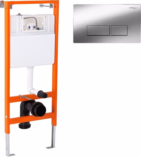 | В комплекте: Крепежные элементы для унитаза Крепежные элементы для рамы Комплект соединительных патрубков для унитаза Фановый отвод для слива и переходник ø90/110 G1/2” запорный клапан Кнопка смыва цвет хром |