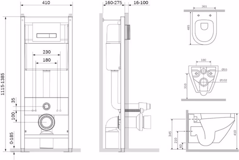 - смывной бачок, подвесной унитаз, кнопка смыва, крышка-сиденье