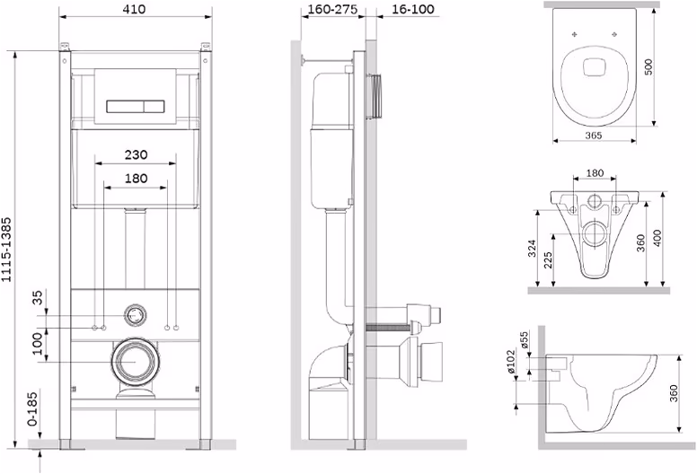 - Инсталляция - 1 шт. Подвесной унитаз - 1 шт. Крышка-сиденье - 1 шт.