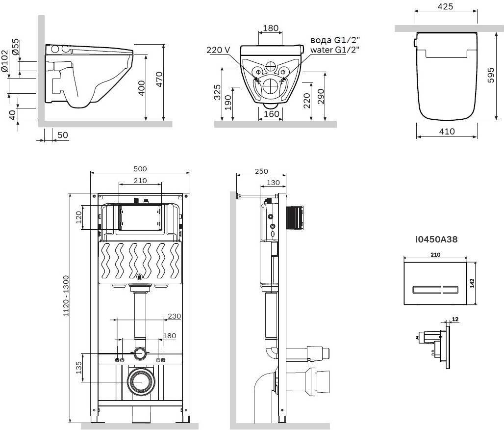 Комплект: Инсталляция AM.PM IS450A38.CCC50A с подвесным унитазом FlashClean, с электронной крышкой-биде CleanCare и клавишей