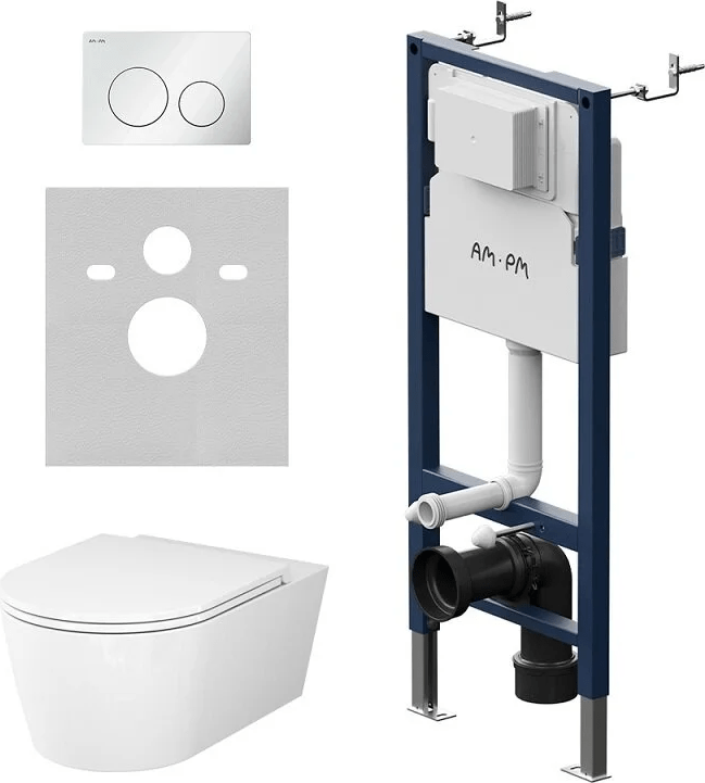 Комплект инсталляции Am.Pm PrimeFit IS90101.8F1701 с белой глянцевой кнопкой смыва L, с подвесным унитазом Func, с микролифтом