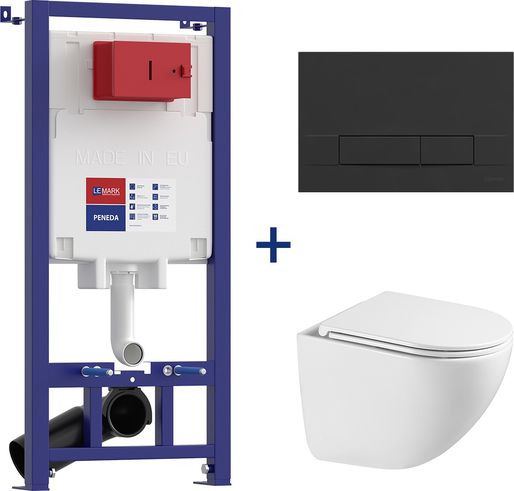 Комплект инсталляции Lemark Peneda Glazer Торнадо 100802428 с черной кнопкой смыва Bit, с микролифтом