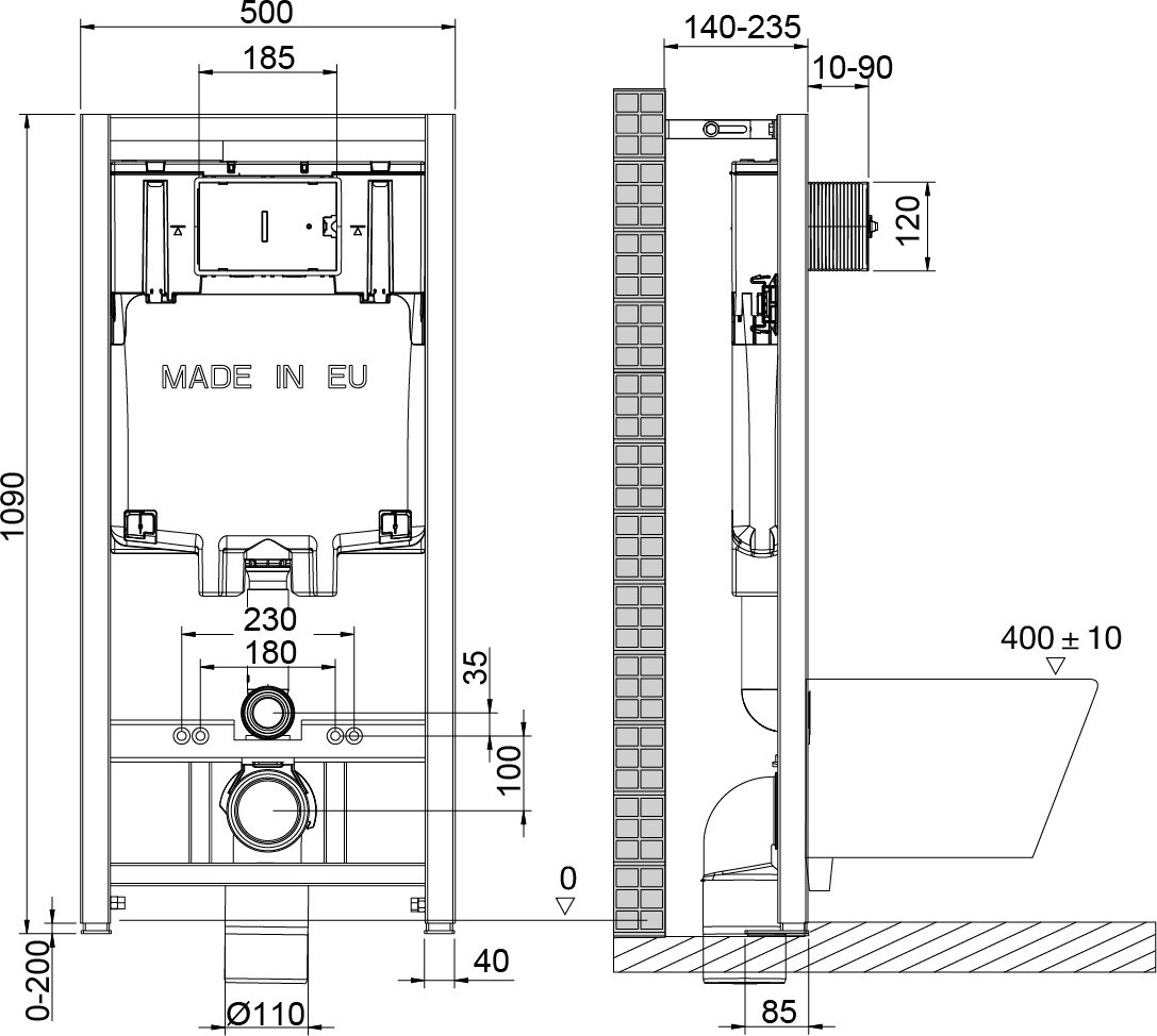 • СИСТЕМА УСТАНОВКИ подходит для лёгких и несущих стен и всех видов подвесных унитазов