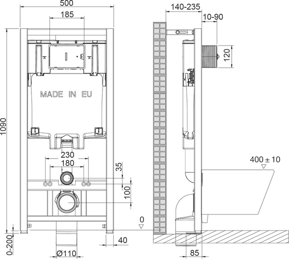 • СИСТЕМА УСТАНОВКИ подходит для лёгких и несущих стен и всех видов подвесных унитазов