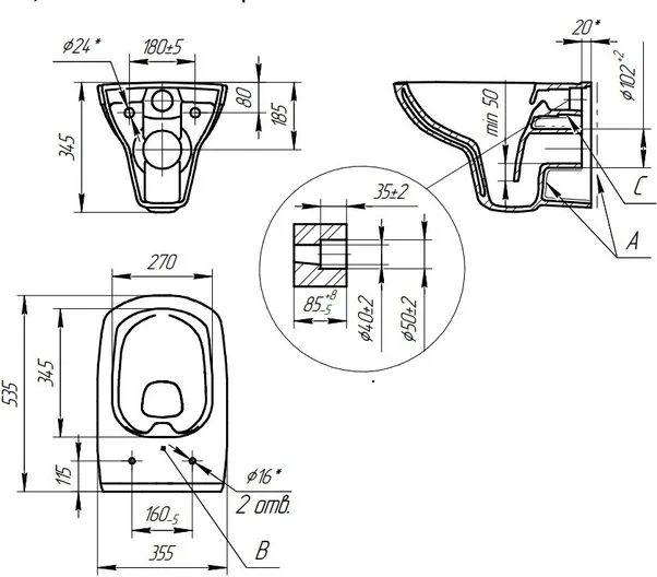 - подвесной унитаз, кнопка смыва, крышка-сиденье