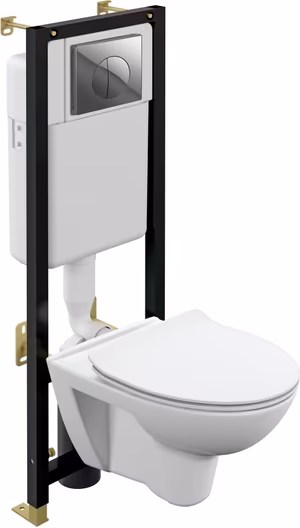 - подвесной унитаз, крышка-сиденье, инсталляция, шумаизоляционная прокладка, монтажный комплект, гарантийный талон/инструкция