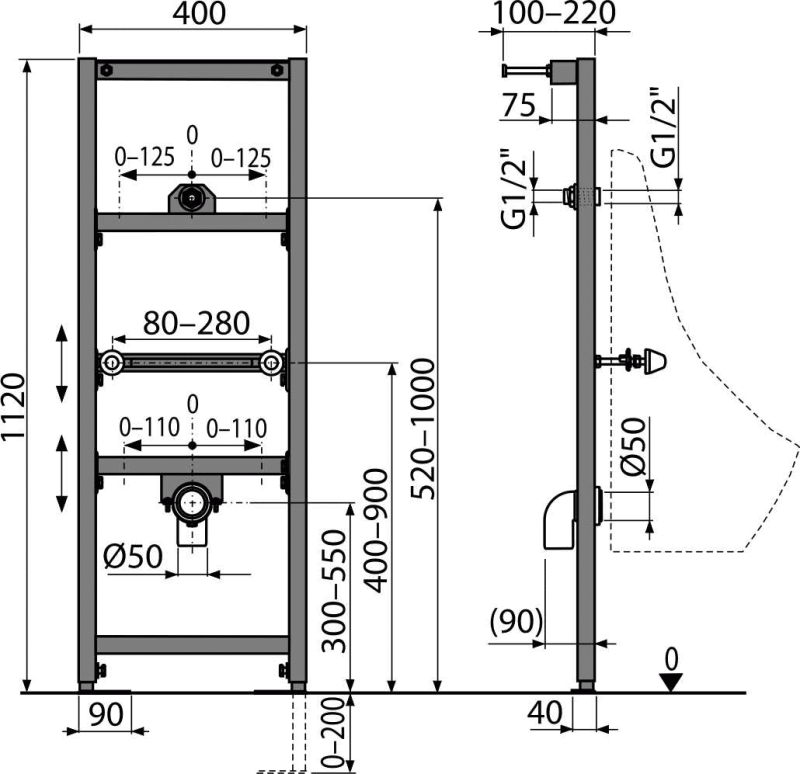 Инсталляция для писсуара AlcaPlast A107/1120 УТ-00052211