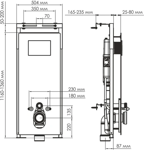 Инсталляция для унитазов WasserKRAFT Salm 27TLT.010.ME.WH.WH01 с белой кнопкой смыва