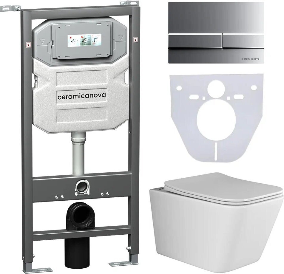 Комплект инсталляции Ceramicanova Envision Metric кнопка смыва Flat хром матовый, с микролифтом, с шумоизоляционной панелью