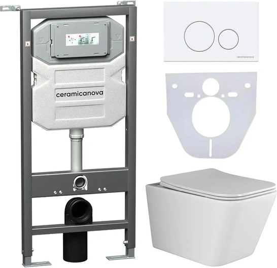 Комплект инсталляции Ceramicanova Envision Metric с белой кнопкой смыва Round, с микролифтом, с шумоизоляционной панелью