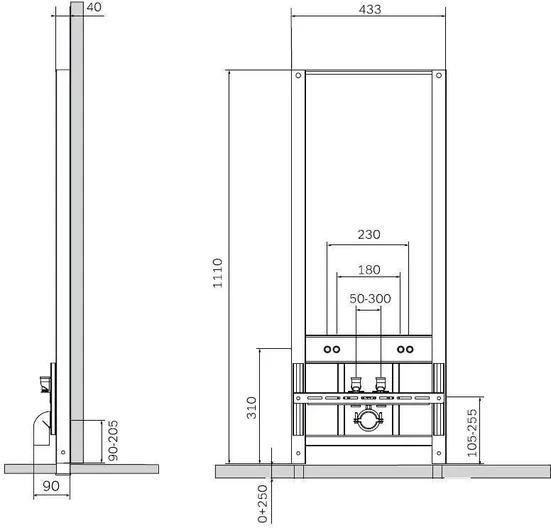 Универсальность: бесступенчатая регулировка по вертикали планки для водорозеток, универсальность крепления водорозеток благодаря угловой планке с перфорацией, отверстия для крепления биде 180/230 мм.
