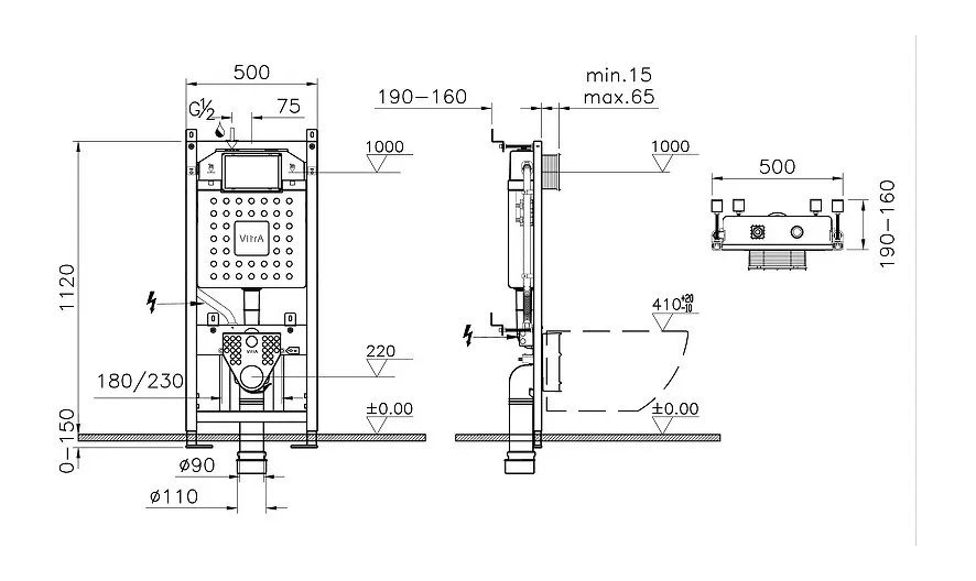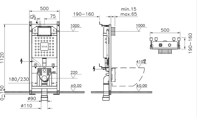 Усиленная механическая инсталляция VitrA Professional для установки за гипсокартонной перегородкой и перед капитальной стеной
