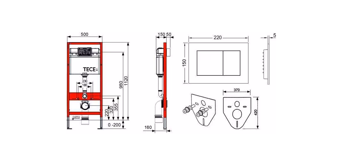 Система инсталляции TECE Now 9400012 4 в 1 состоит из рамного модуля Tece TECEbase 9 400 001, кнопки смыва Tece TECEnow 9240401, шумоизоляционной панели Tece TECEprofil и крепежных элементов. Чтобы обеспечить свежесть воздуха в санузле, используется система отведения запахов, для которой необходимо приобрести патрубок для вывода в вентиляцию, вентилятор и выключатель. Модуль выдерживает нагрузку до 400 кг благодаря особой конструкции, надежности используемых материалов и постоянному контролю качества.