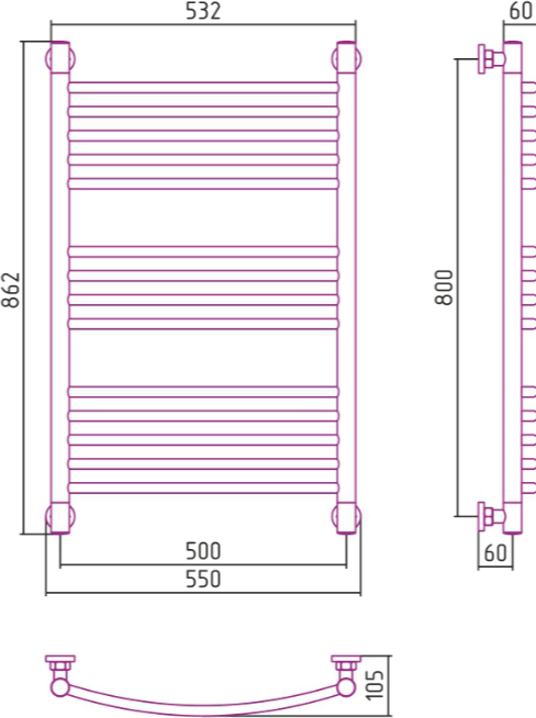 - Полотенцесушитель - 1 шт. Инструкция - 1 шт.