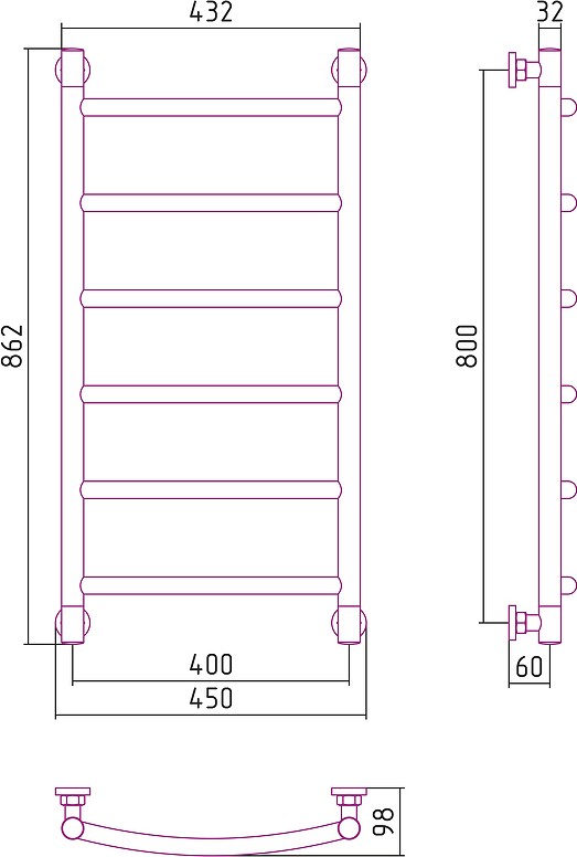 - Полотенцесушитель - 1 шт. Инструкция - 1 шт.
