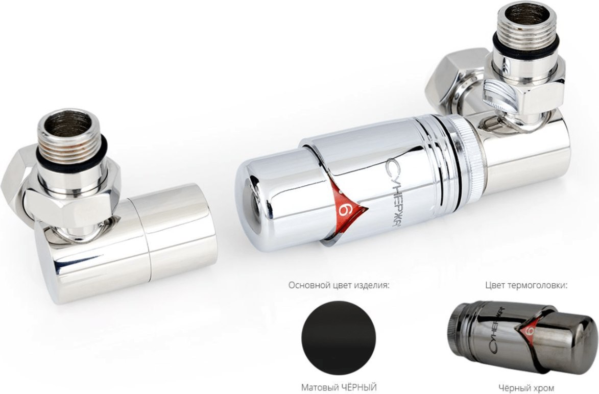 Автоматический терморегулятор Сунержа 31-1422-0000 1/2" НР х G 3/4" НГ 3D правый, матовый черный - черный хром