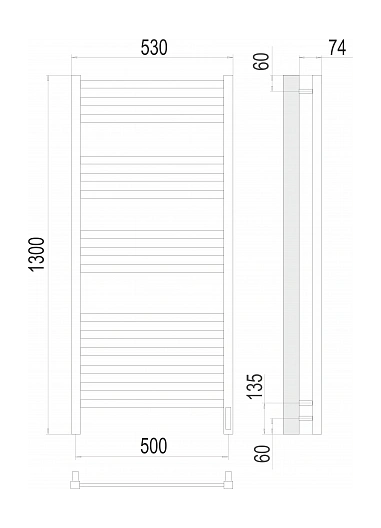 Полотенцесушитель электрический Terminus Ното П15 50х130