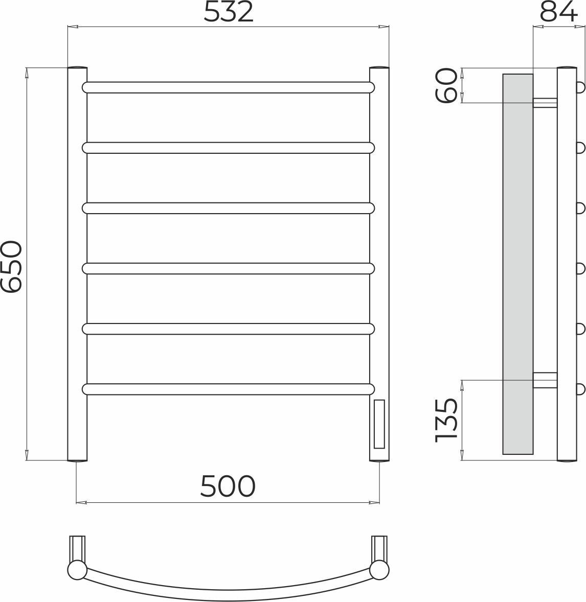 Полотенцесушитель электрический Terminus Классик П6 500х650