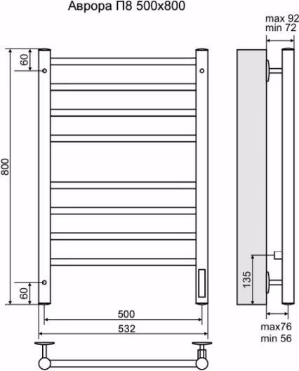 Полотенцесушитель электрический Terminus Аврора КС П8 50х80 quick touch белый матовый