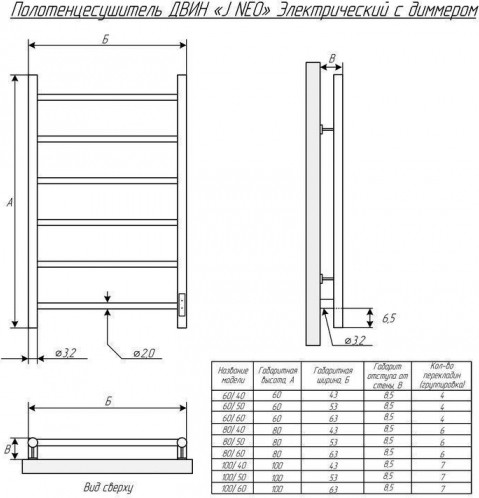 Электрический полотенцесушитель ДВИН J с димером из серии "NEO"