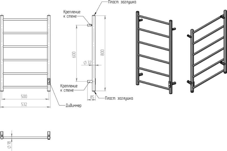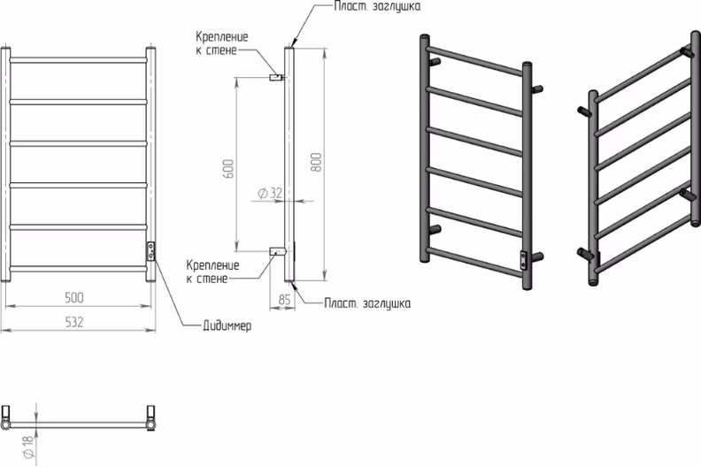 - Полотенцесушитель электрический - 1 шт. Инструкция - 1 шт.