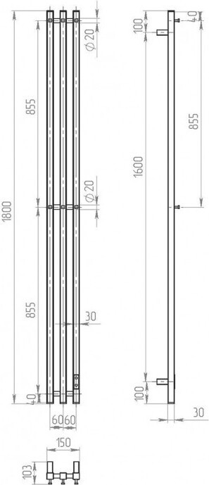 Узкий полотенцесушитель для ванной комнаты ДВИН X-3 Neo