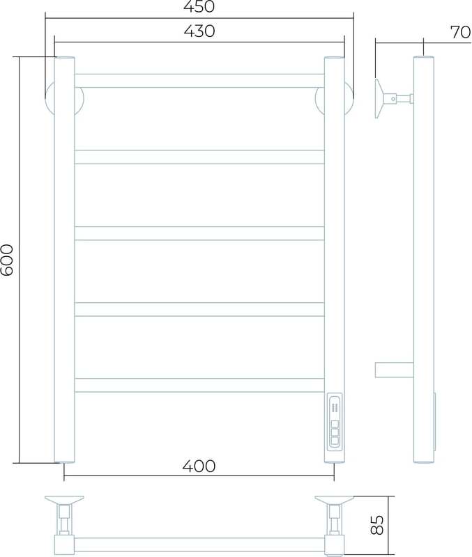 - Полотенцесушитель электрический, Заглушки на концах стоек, тип диммера - кнопочный (Quick Touch), крепления к стене.