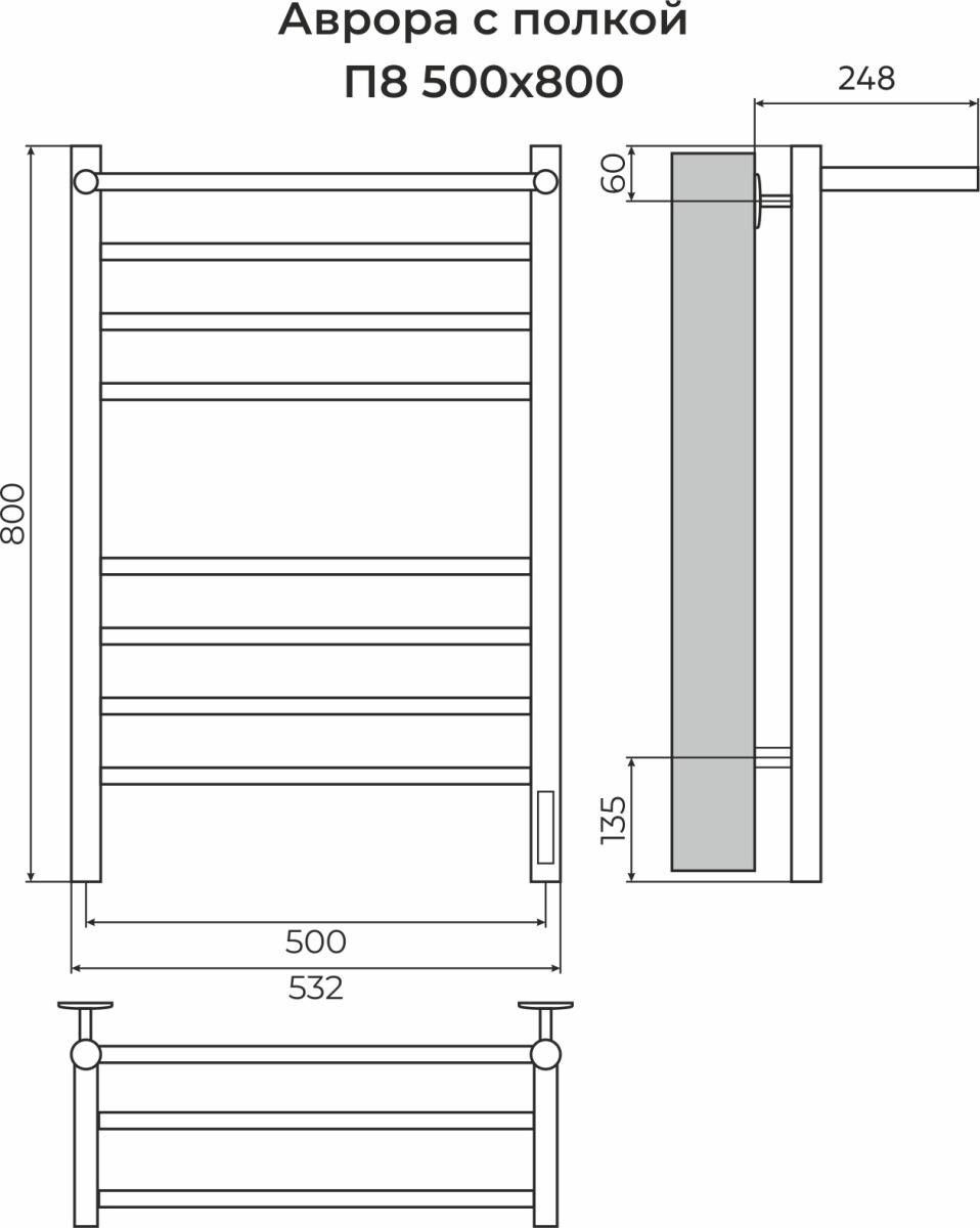 Полотенцесушитель электрический Terminus Аврора П8 500х800 КС 9003 матовый
