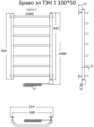 Полотенцесушитель электрический Тругор Браво ТЭН 1 100*50