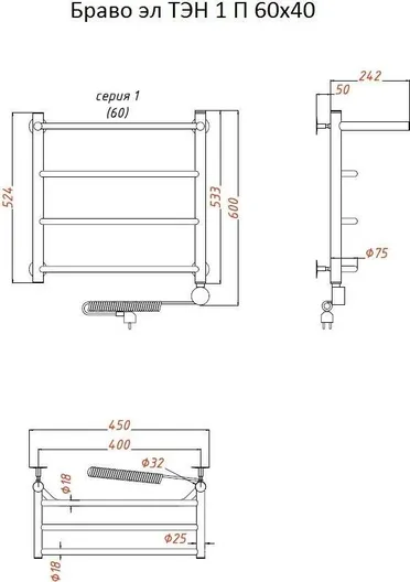 Полотенцесушитель электрический Тругор Браво ТЭН 1 60*40 с полкой