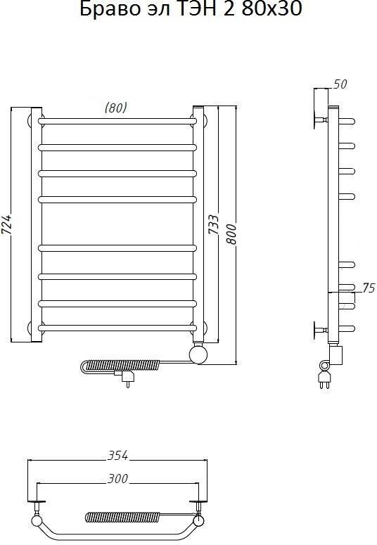 Полотенцесушитель электрический Тругор Браво ТЭН 2 80*30 УТ-00089196
