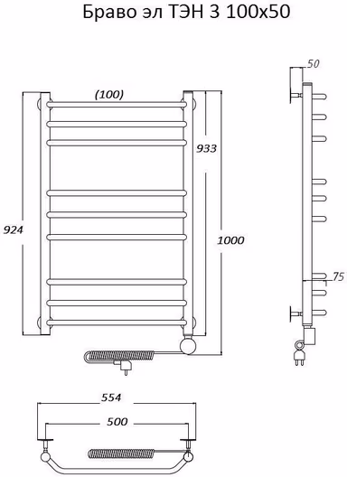 Полотенцесушитель электрический Тругор Браво ТЭН 3 100*50 с полкой