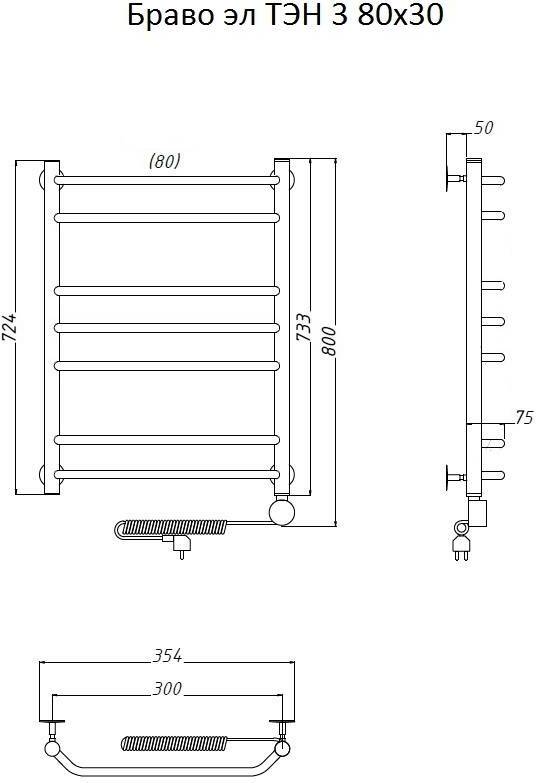 Полотенцесушитель электрический Тругор Браво ТЭН 3 80*30 УТ-00089220