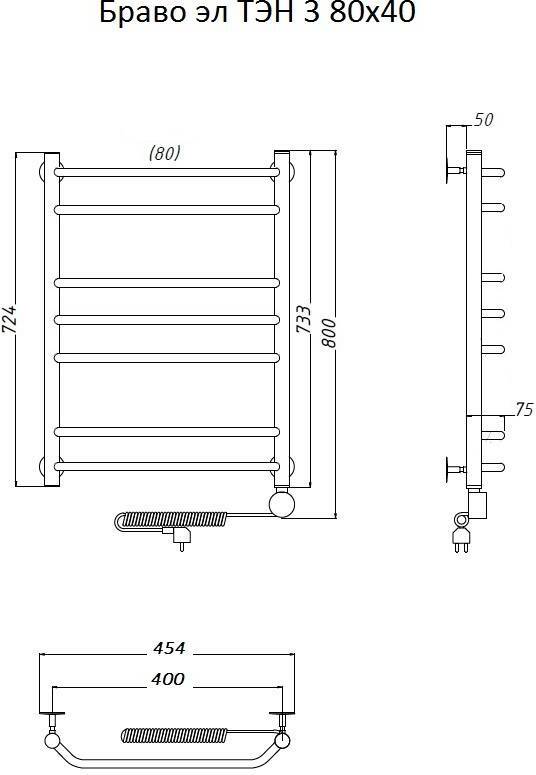 Полотенцесушитель электрический Тругор Браво ТЭН 3 80*40