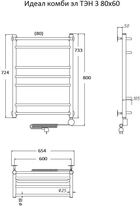 Полотенцесушитель электрический Тругор Идеал комби ТЭН 3 П 100*40 с полкой