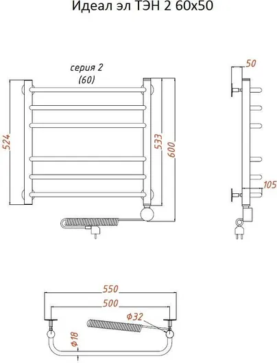 Полотенцесушитель электрический Тругор Идеал ТЭН 2 60*50