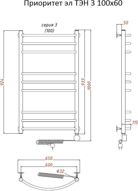 Полотенцесушитель электрический Тругор Приоритет 3 100х60 тэн