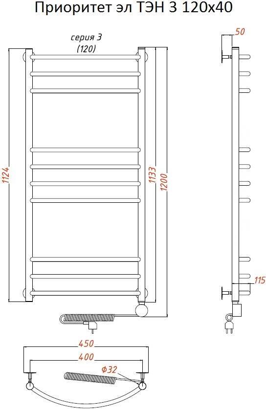 Полотенцесушитель электрический Тругор Приоритет 3 120х40 тэн