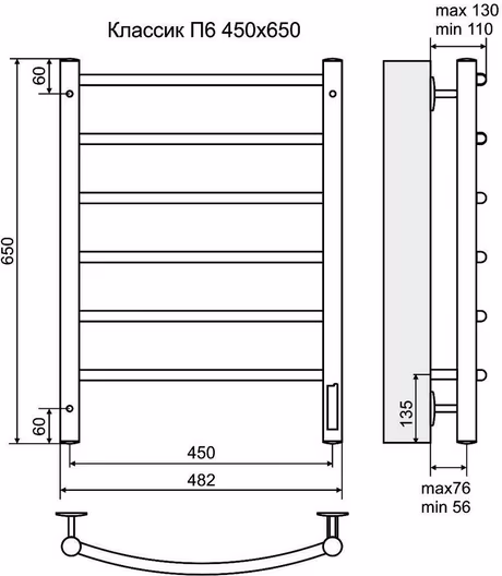 Полотенцесушитель электрический Terminus Классик П6 450х650 4660059580203