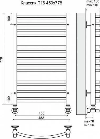 - Полотенцесушитель - 1 шт. Крепление телескопическое - 4 шт. Заглушка - 1 шт. Заглушка с краном маевского - 1 шт. Инструкция - 1 шт.