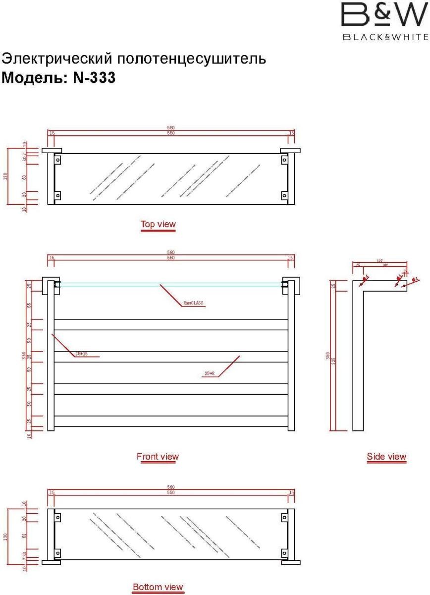 Полотенцесушитель электрический Black & White N-333B Matt Black 58х35x13
