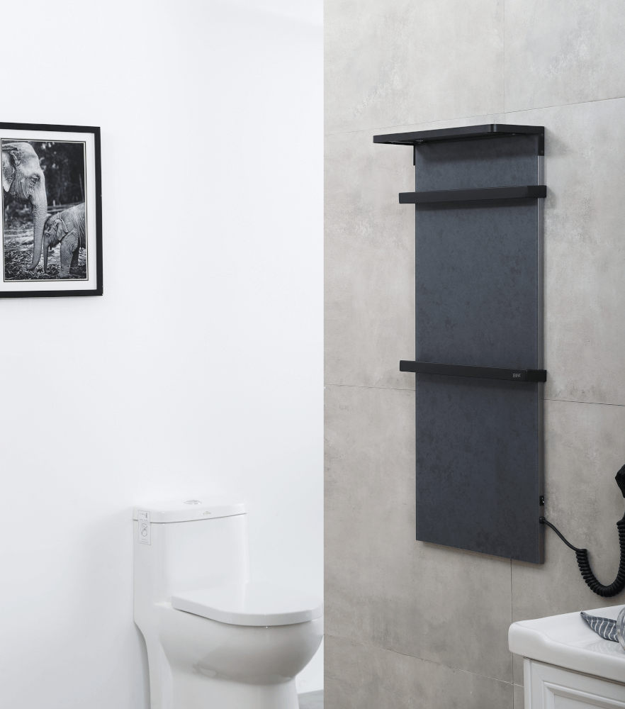 | • Полотенцесушитель электрический • Материал корпуса, алюминий • Цвет черный матовый • Основной материал, закаленное стекло под темно-серый керамогранит • Полка закаленное серое стекло • Углеродный нагревательный элемент • Мощность 120 Вт • Температура нагрева 55-65 С° • Напряжение 220-240в, 50 Гц • Витой шнур 450 мм(справа) • Класс защиты IPX4 • Каждый полотенцесушитель имеет оригинальный рисунок на стекле |