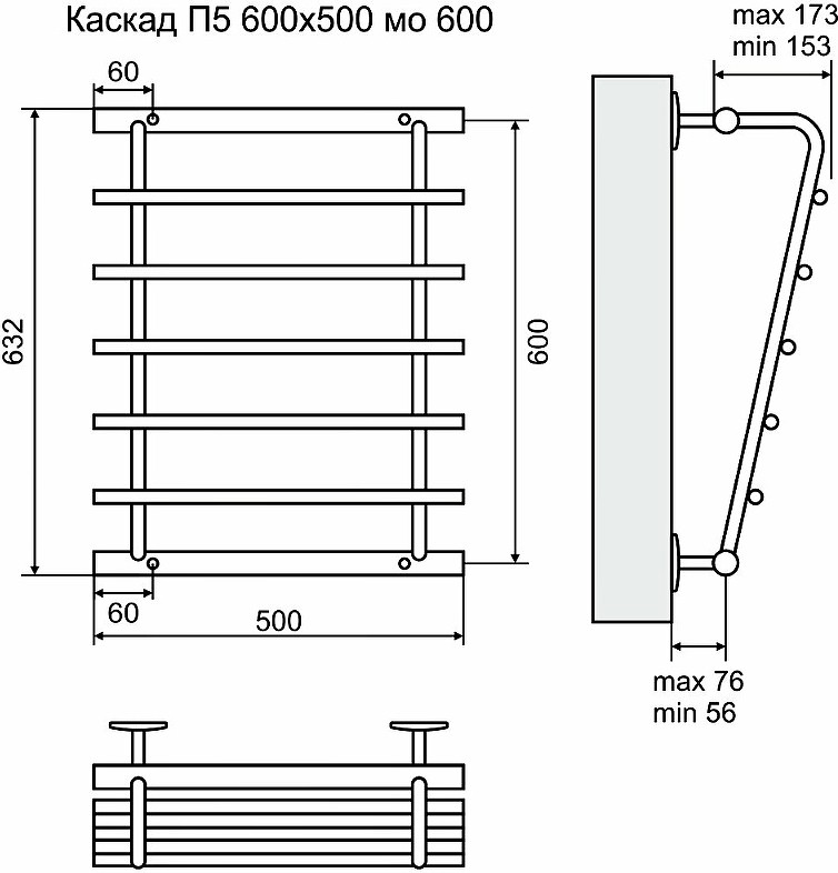 Полотенцесушитель водяной Terminus Каскад П5 60x50 с боковым подключением 600