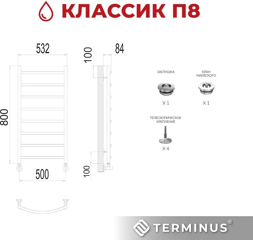 - Полотенцесушитель водяной - 1 шт. Инструкция - 1 шт.