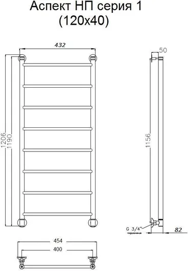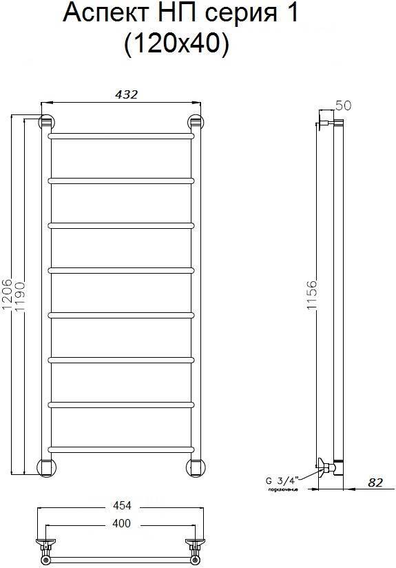 Полотенцесушитель водяной Тругор Аспект 1 120х40 универсальное подключение