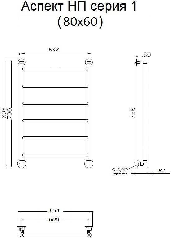 Полотенцесушитель водяной Тругор Аспект НП 1 80х60 универсальное подключение