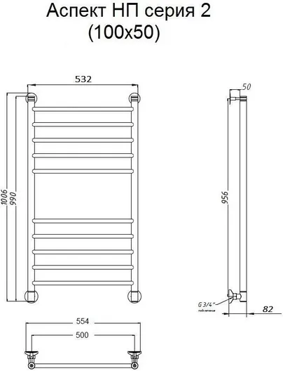 Полотенцесушитель водяной Тругор Аспект НП 2 100х50 универсальное подключение