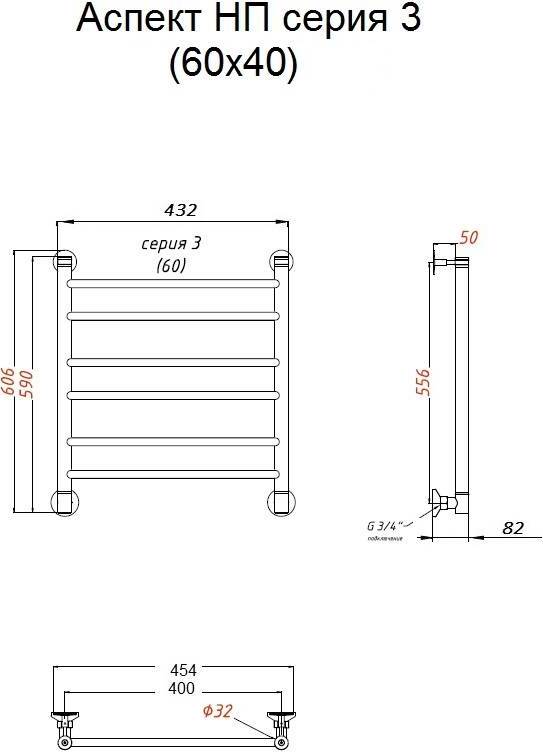 Полотенцесушитель водяной Тругор Аспект 3 60х40 универсальное подключение