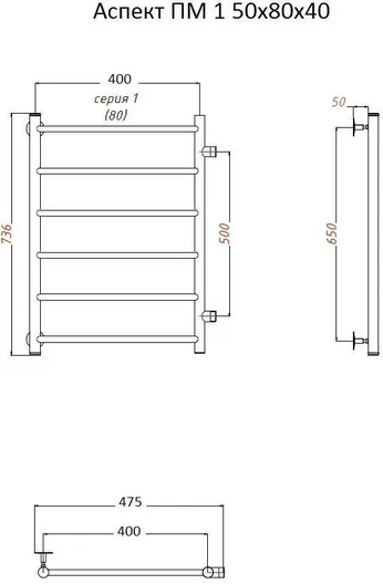 Полотенцесушитель водяной Тругор Аспект 1 50х80х40 боковое подключение