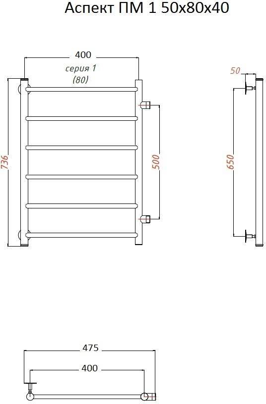 Полотенцесушитель водяной Тругор Аспект 1 50х80х50 боковое подключение